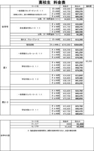 • 授業料一覧